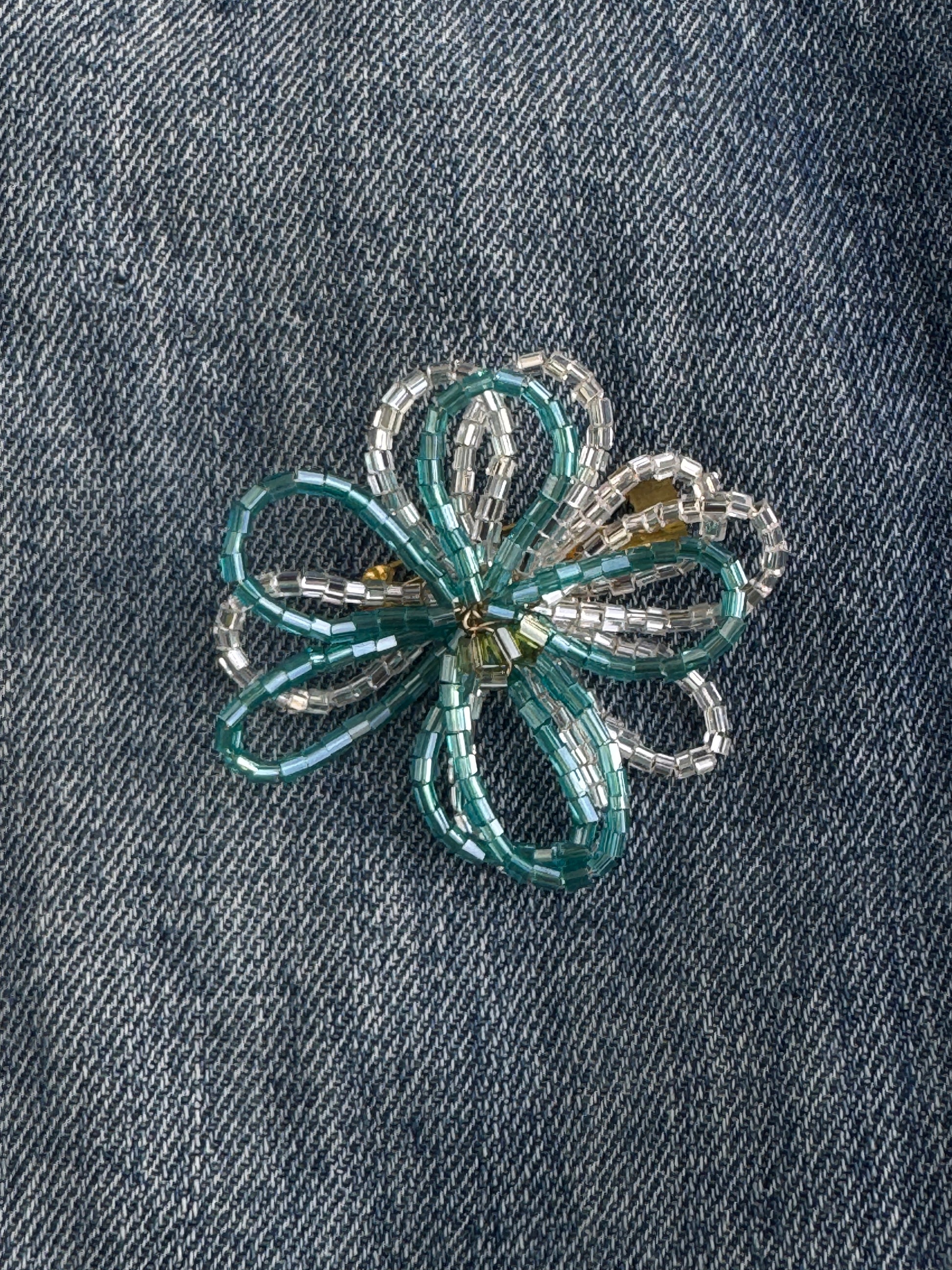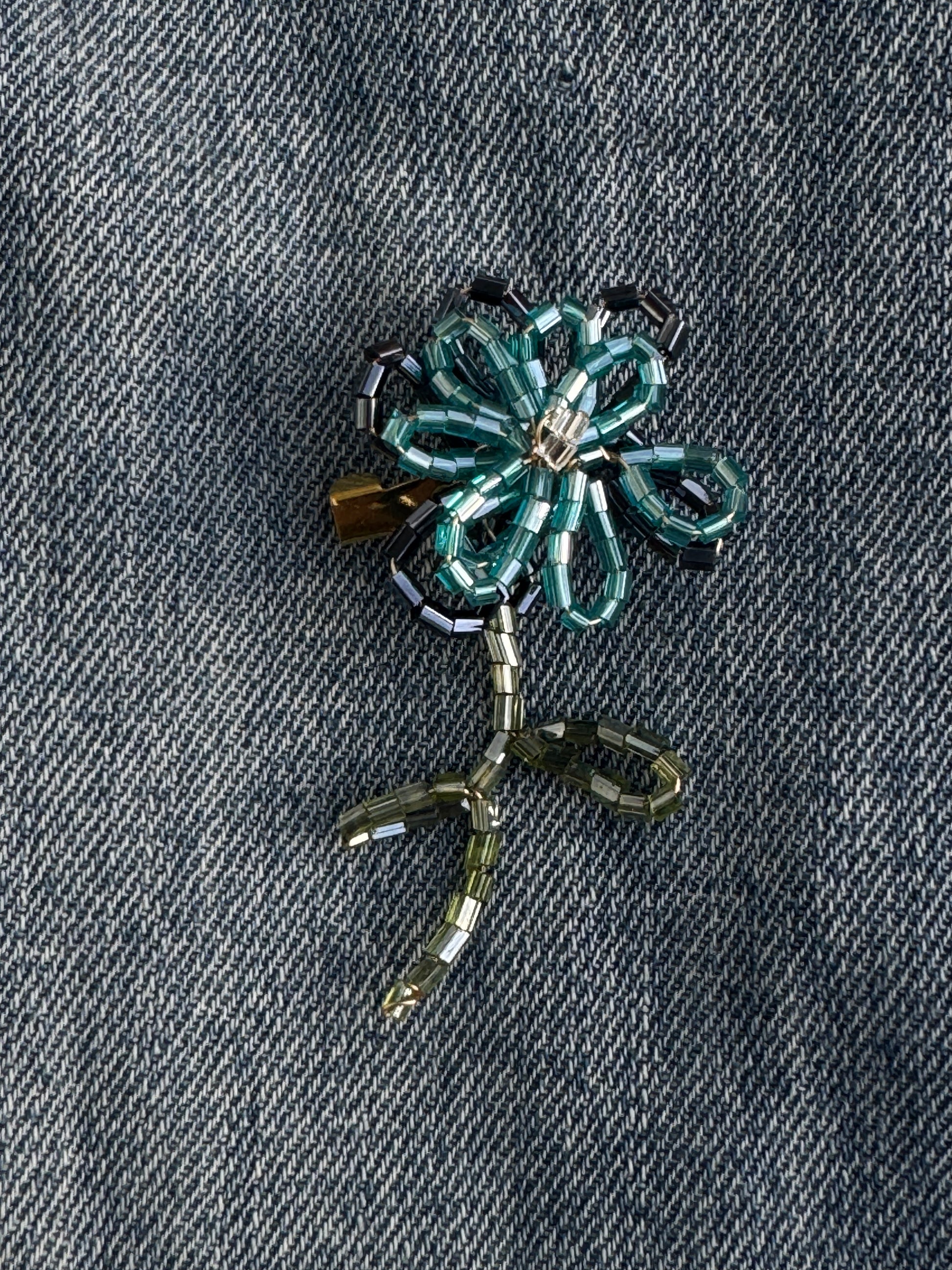 Miyuki boncukları ile yapılmış çiçek şeklindeki broşunuzla ceket, keten çanta ve jeanlarinize farklılık katabilirsiniz