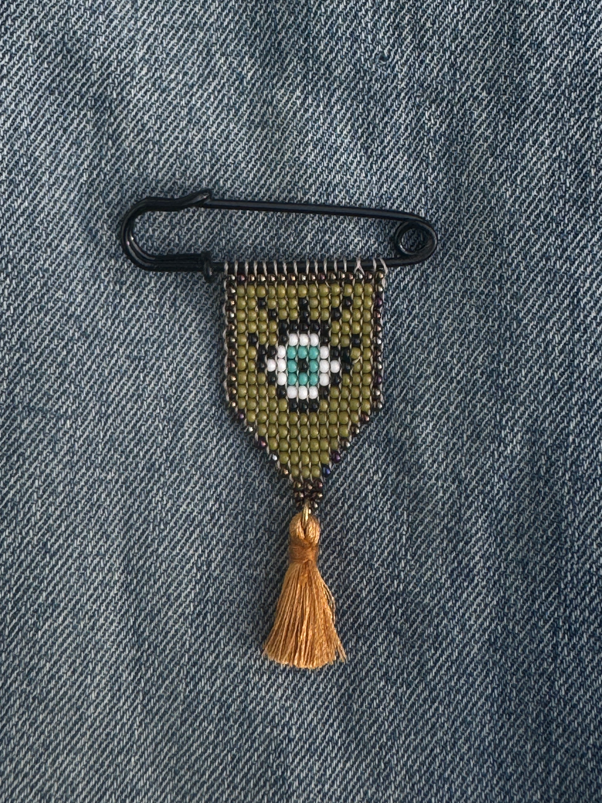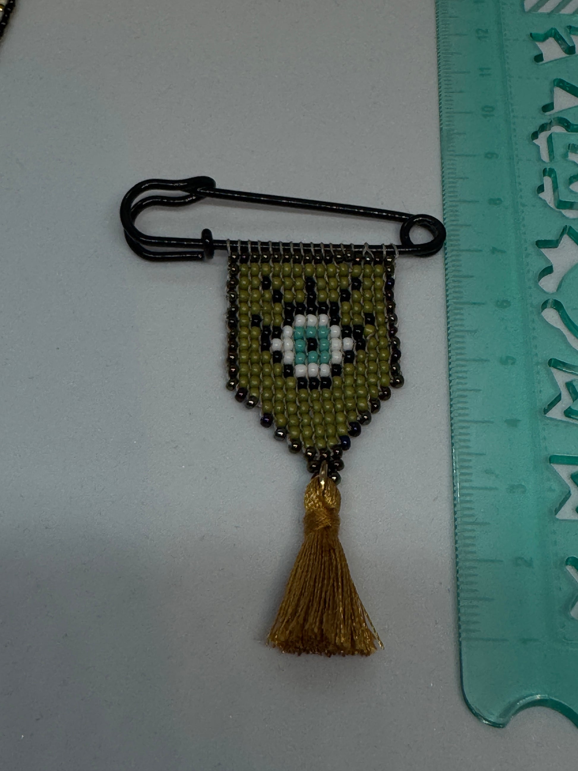 Miyuki boncuklarla %100 el emeği broş. Ceket, mont ve keten çantalarınıza renk katmak isteyenler için özel olarak hazırlandı. Uzunluk 7,5 cm