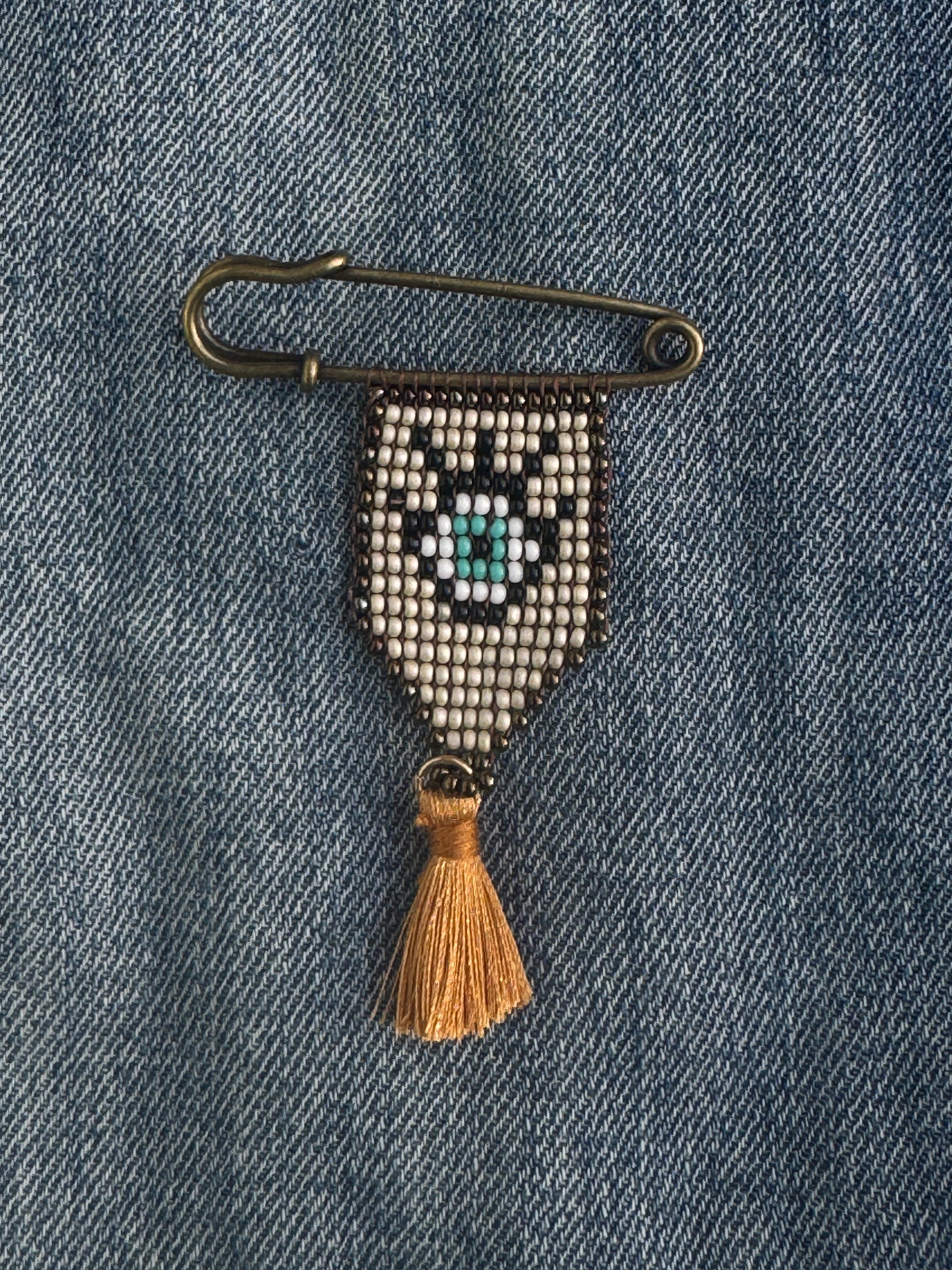 Miyuki boncuklarla %100 el emeği broş. Ceket, mont ve keten çantalarınıza renk katmak isteyenler için özel olarak hazırlandı. Uzunluk 7,5 cm