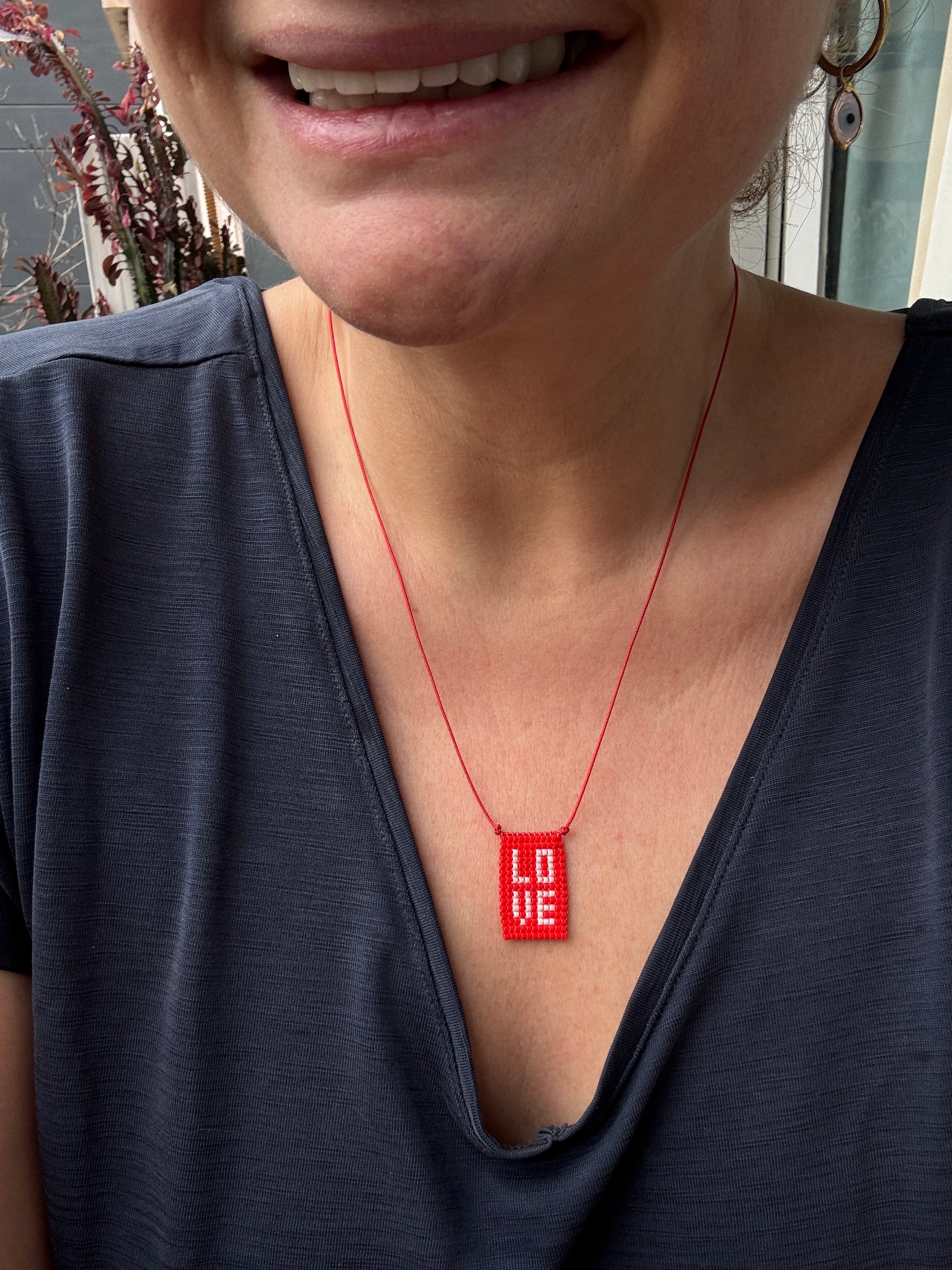Miyuki boncuklarla el yapımı kolye.. Love yazılı bu kolye ile tarzınıza tarz katacaksınız..